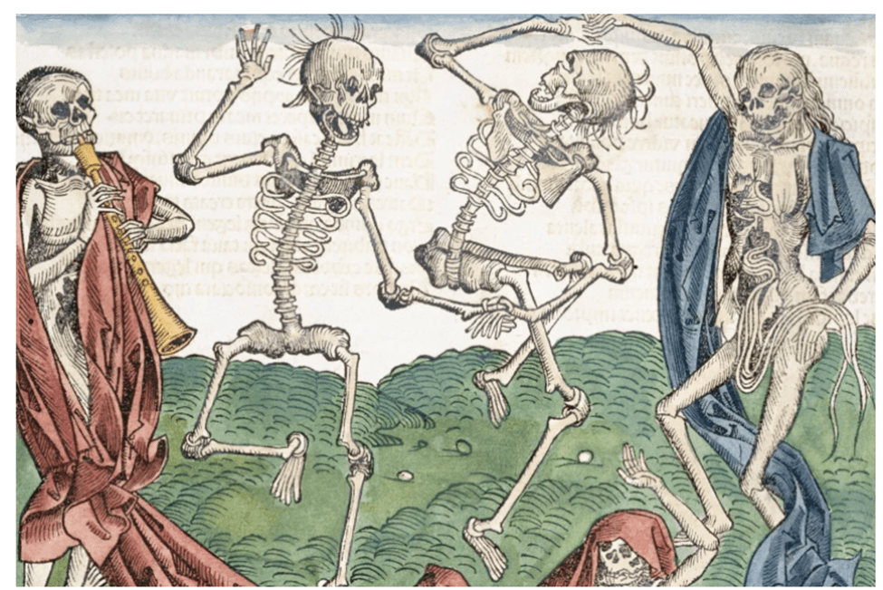 Now, last post, I should have shown you my idea about dancing skeletons. They were popular in the Middle Ages. I quite like these ones: